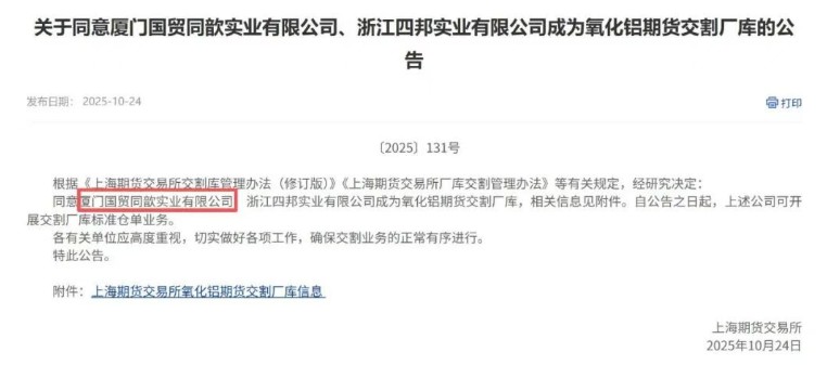 國(guó)貿(mào)股份獲批上期所氧化鋁交割廠庫(kù)資質(zhì)。